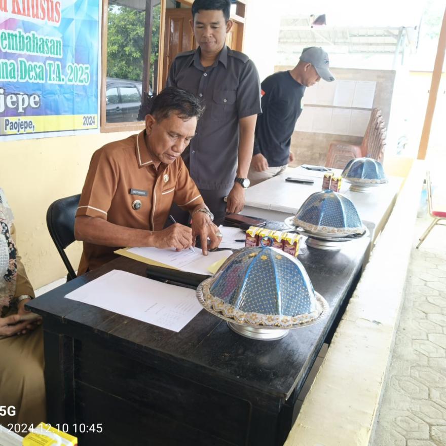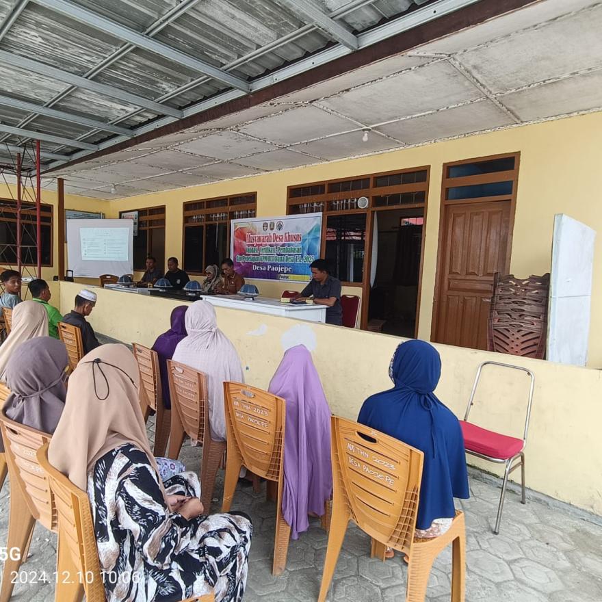 Musyawarah Desa Khusus, Validasi, Verifikasi, Pembahasan dan Penetapan KPM BLT Dana Desa T.A 2025 yang dilaksanakan di Kantor Desa Paojepe. Acara ini dihadiri oleh Kasi PMD Pemerintah Kecamatan Keera, Kepala Desa Paojepe, Pendamping Lokal Desa dan tokoh masyarakat.